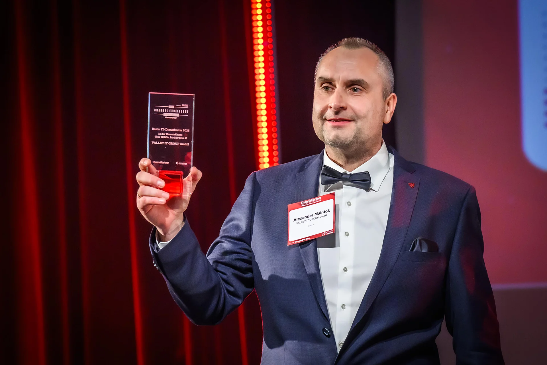 Die Preisverleihung fand am 22. Januar 2026 im G.O.P. Varieté-Theater München statt. Für die VALLEY IT GROUP nahm Alexander Maintok, verantwortlich für das operative Geschäft der Unternehmensgruppe, die Auszeichnung entgegen. „Diese Ehrung gehört unseren Kundinnen und Kunden ebenso wie den Teams aller Gesellschaften unserer Unternehmensgruppe“, sagt Maintok. „Sie bestätigt unseren konsequenten Kurs: moderne, skalierbare Managed Services mit messbarem Mehrwert – vom Mittelstand bis zum Konzern, lokal verankert und international lieferfähig.“ Maintok weiter: „Exzellente Kundenerlebnisse sind kein Zufall. Wir investieren gezielt in unsere Mitarbeitenden, in Servicequalität und in ein starkes Ökosystem. Das zahlt direkt auf Verlässlichkeit, Sicherheit und Effizienz bei unseren Kunden ein.“